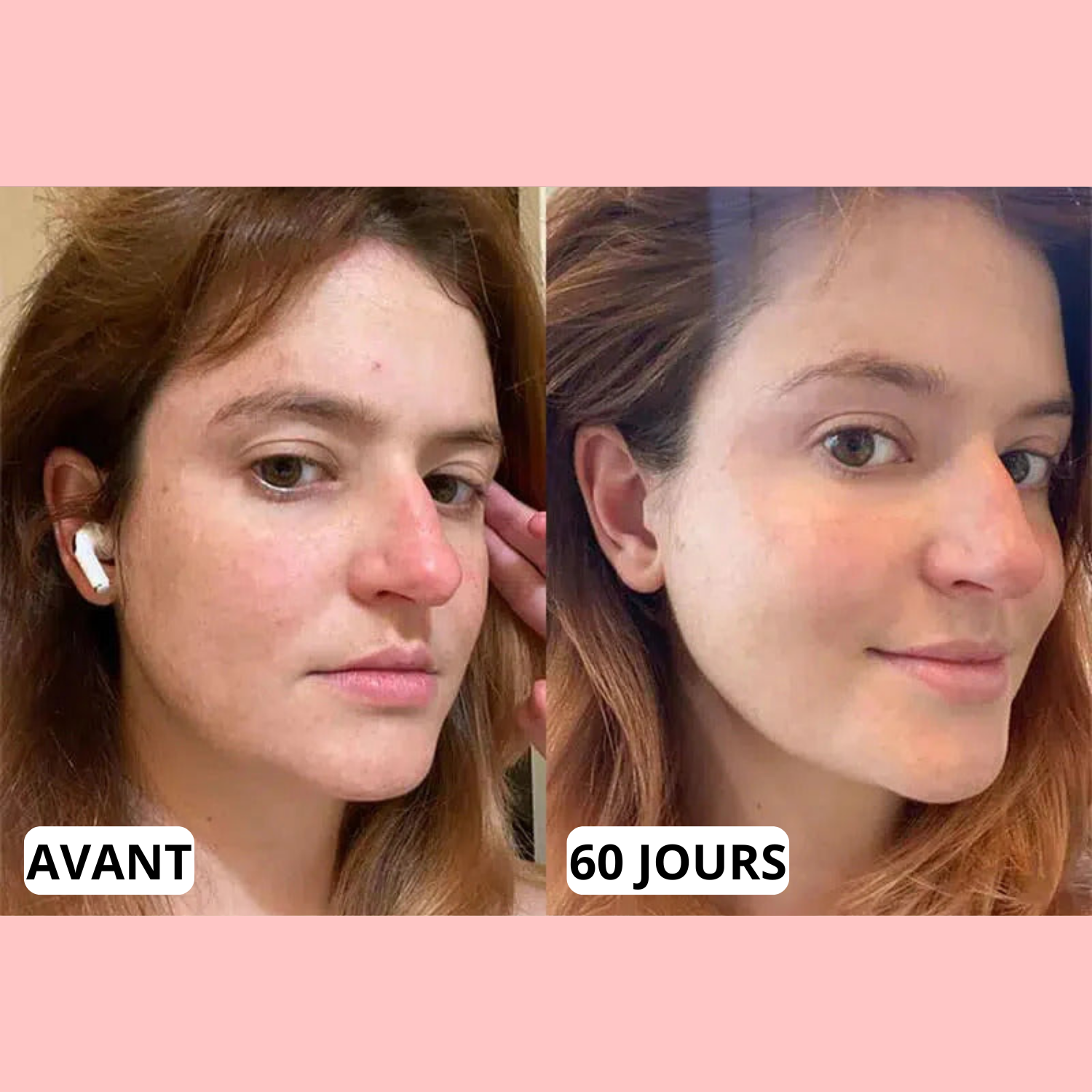 La plupart de nos clients remarquent une peau plus lumineuse et plus nette après seulement 3 à 4 semaines d’utilisation régulière. Les résultats optimaux apparaissent généralement en moins de 90 jours
